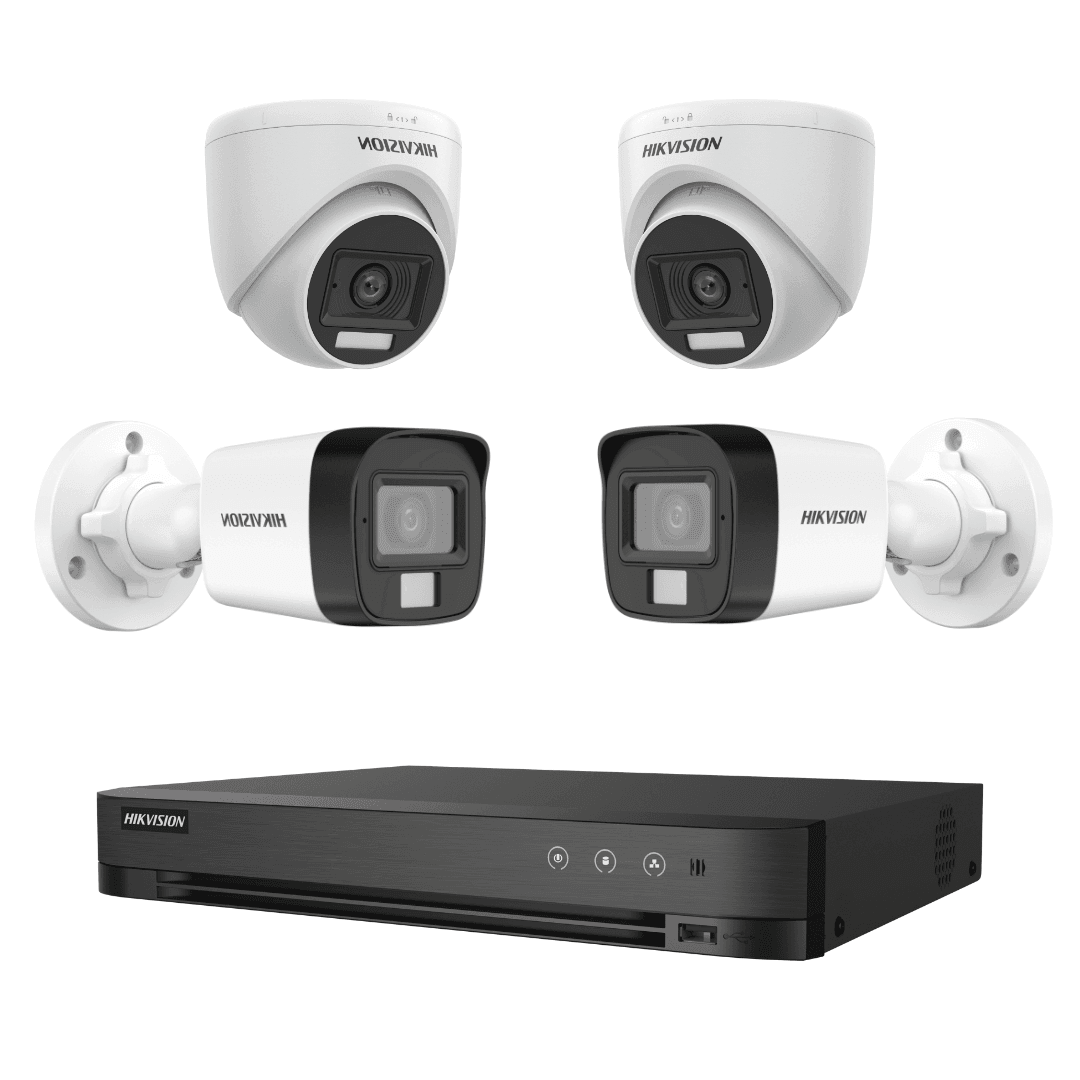باقة 4 كاميرات مراقبة هيكفيجن 4K فائقة الوضوح مع جهاز تسجيل 4 قنوات – داخلي وخارجي